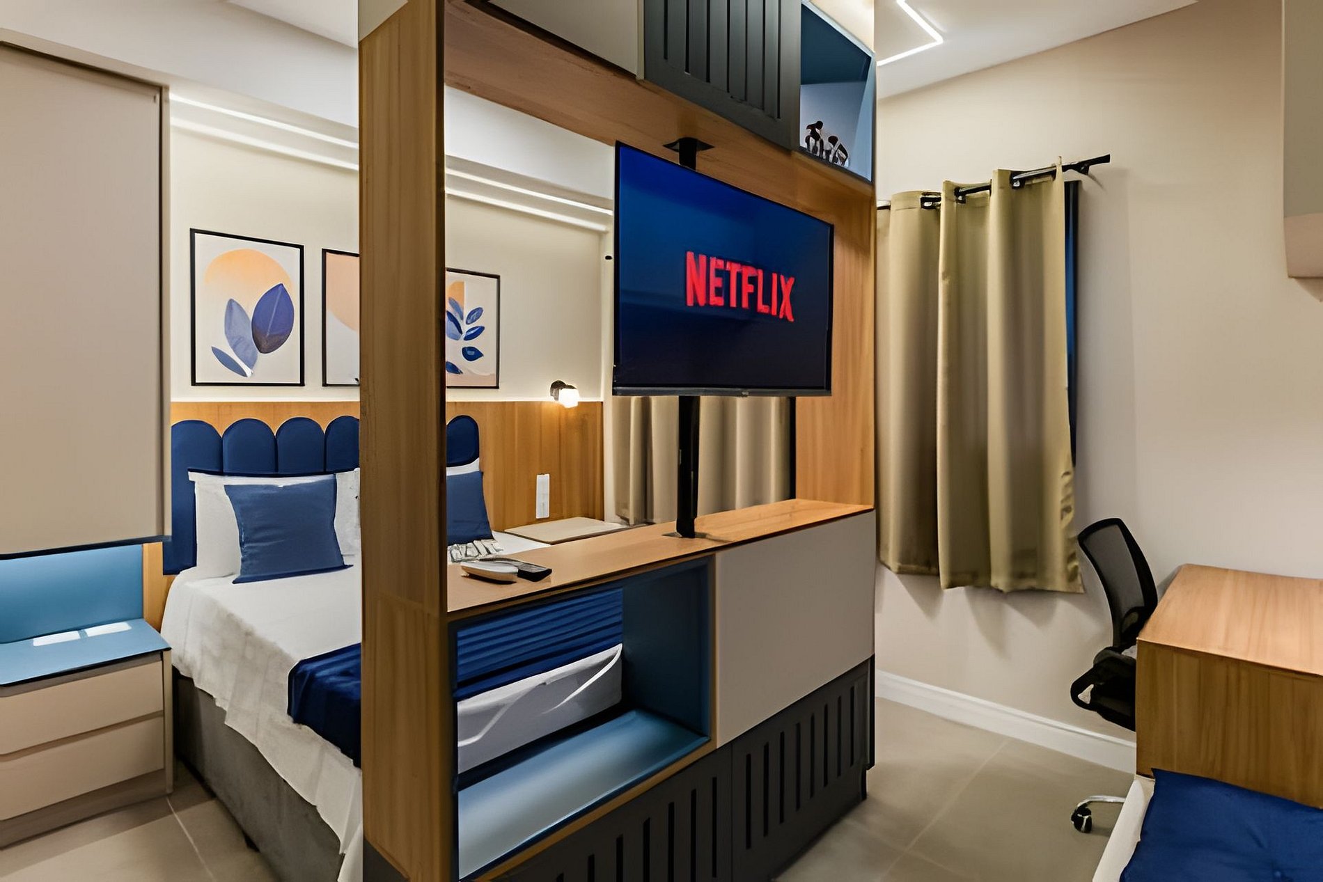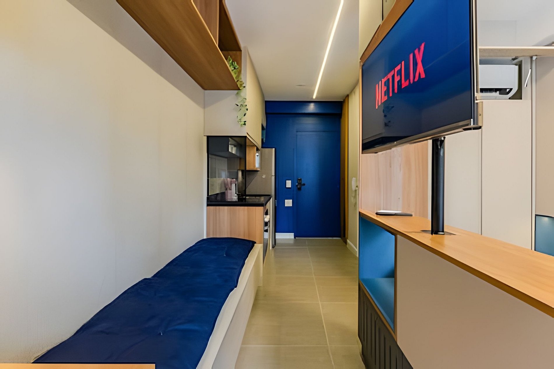 Seja bem-vindo ao Paraíso! Hospede-se neste estúdio acolhedor, situado na encantadora região do Paraíso, a poucos minutos (800 metros) da estação de metrô Paraíso. Desfrute da praticidade de estar perto de tudo e da tranquilidade de um espaço pensado para o seu conforto. O prédio conta com áreas comuns modernas e perfeitas para relaxar, trabalhar ou curtir momentos de lazer. Sinta-se em casa e aproveite São Paulo com toda a comodidade! O ID Paraíso está pronto para te receber! Ele foi pensado para que você possa relaxar ou trabalhar com total conforto, de acordo com a sua necessidade. Um espaço moderno e funcional, ideal para quem busca praticidade e bem-estar em uma das regiões mais estratégicas de São Paulo. Nessa unidade, você contará com: ●Cozinha Compacta com geladeira e utensílios de cozinha ● Cooktop e micro-ondas ● Smart TV 40 polegadas ● Forno Elétrico ● Micro-ondas ● Cortina Blackout ● Ar condicionado ● Cama casal com enxoval de hotel ● Guarda-roupa ● Wi-Fi, ótimo para home office ● Mesa e cadeira para home office ● Banheiro com chuveiro e secador de cabelos ● Toalhas e amenities ● Mercadinho no térreo Será um prazer te receber aqui. Após confirmar sua reserva, você receberá uma mensagem solicitando os dados para cadastro. Assim que o cadastro estiver concluído, no dia da sua estadia você receberá as informações de acesso ao apartamento, enviadas por mensagem. Esse apartamento possui fechadura eletrônica, então você não precisará se preocupar com chaves! Importante: O envio dos documentos é obrigatório para garantir sua liberação no prédio e o acesso ao apartamento. Outras observações: ● Limpeza adicional: R$ 180,00 ● Atenção - Para as estadias são emitidos somente recibos. Chegada no prédio ● Check in a partir das 15h00 ● Check out até as 11h00 ● Não é permitido pet ● Não é permitido o acesso ao prédio antes do check in. ● Atendimento online 24 hrs ● Proibido fumar nos apartamentos sob pena de multa ● Politica de Visitantes - É permitido o acesso de até 2 visitantes por dia, mediante apresentação de documento com foto na portaria. A permanência dos mesmos é limitada até às 22h, após esse horário será necessário o pagamento de uma noite adicional, mediante disponibilidade e capacidade do apartamento. É necessário entrar em contato com o time de atendimento via app de mensagens para verificar maiores informações. ● Hospedagem para Crianças e Adolescentes Não temos politica de gratuidade e crianças são bem vindas, porém consideradas como adultos pagantes ● Não trabalhamos com camas extras e berços. ● Menores de 18 anos serão liberados somente mediante autorização dos pais ou responsáveis legais (Lei N°. 8.069, de 13/07/1990) Caso precise de qualquer apoio, a Summer é 24h! Bem-vindo à sua casa com serviços. Um abraço Summer.