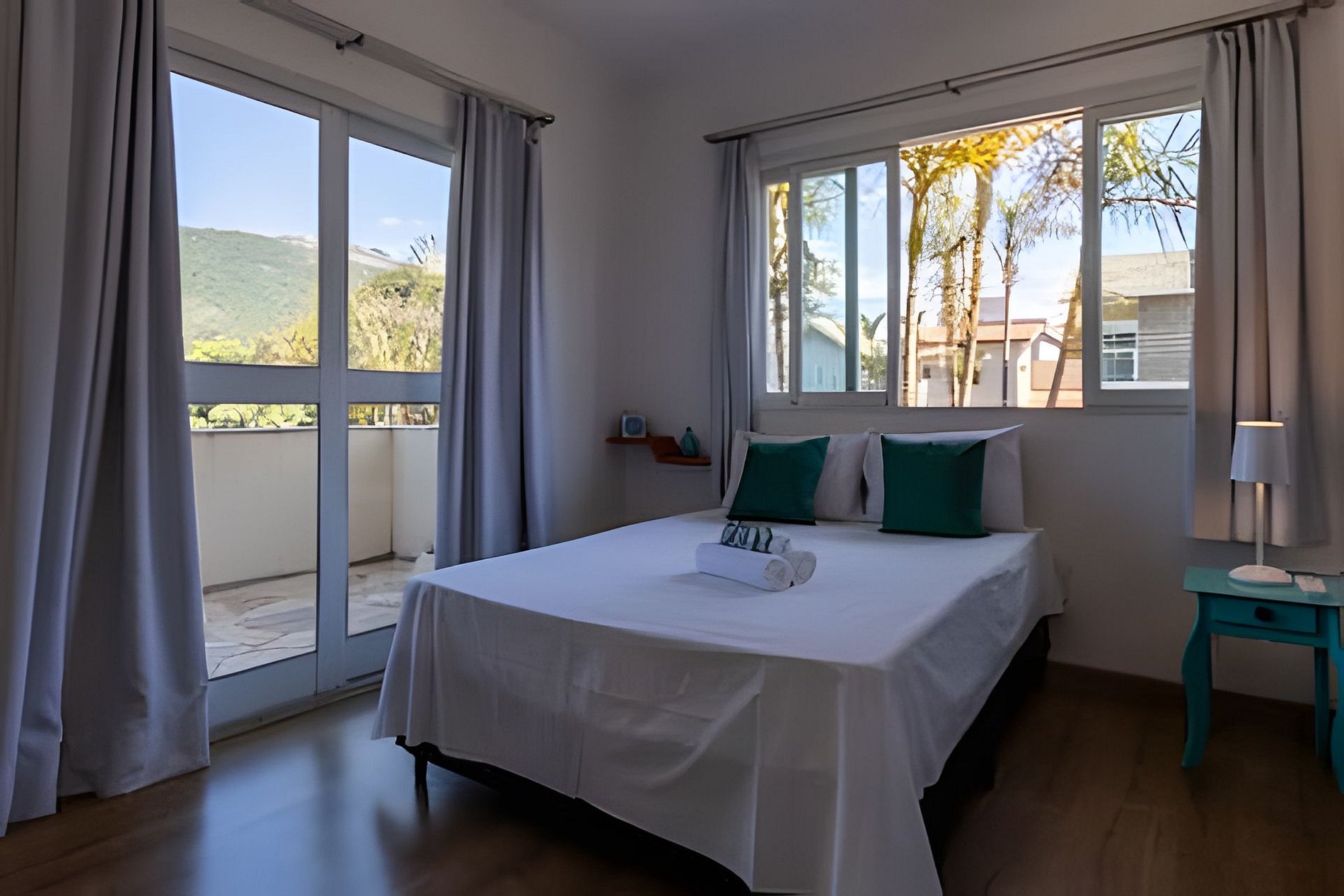 Viva a experiência de Atibaia🌄 Hospede-se em uma casa acolhedora com vista para as montanhas, perfeita para descansar e curtir momentos em família. Aproveite a piscina privativa nos dias de sol e a lareira para noites aconchegantes. Perto de trilhas e mirantes, é o refúgio ideal para quem busca tranquilidade e contato com a natureza. 🌄 Casa espaçosa em Atibaia com vista para as montanhas! No térreo, você conta com uma sala de estar acolhedora, lareira, sala de TV, cozinha completa, área de jantar e espaço gourmet com churrasqueira, além de um lavabo — tudo pensado para oferecer conforto e praticidade durante toda a estadia. No andar superior, ficam 4 quartos, sendo 3 suítes com cama de casal, e 1 quarto com cama de casal + 1 cama de solteiro. Há também uma charmosa sala de estar com lareira e TV, que dá acesso a uma ampla sacada com vista deslumbrante para as montanhas, perfeita para momentos de descanso. 🏡 Destaques: 🛏 Acomoda até 10 hóspedes 3 suítes com cama de casal 1 quarto com cama de casal + 1 cama de solteiro Sala de estar com lareira (térreo e superior) Sala de TV Cozinha completa e área de churrasqueira Piscina privativa Sacada ampla com vista para as montanhas 📍 Localização: Região residencial de Atibaia. 📌 Vista panorâmica para as montanhas a partir da sacada do piso superior ⏰ Horários: Check-in: 14h (máximo até 20h) Check-out: 12h 🏠 Regras: Apenas hóspedes da reserva podem acessar o imóvel (visitas não são permitidas) Proibido fumar Proibido som alto, a casa está localizada em região residencial, garantindo tranquilidade para todos os vizinhos 🧺 Cuidados: Danos em roupas de cama, banho ou itens da casa poderão ser cobrados Vistoria em vídeo realizada antes de cada check-in 💬 Suporte 24h: Equipe disponível para ajudar durante toda a estadia 🍃 Relaxe, aproveite a vista e viva momentos inesquecíveis em Atibaia! 🌄✨