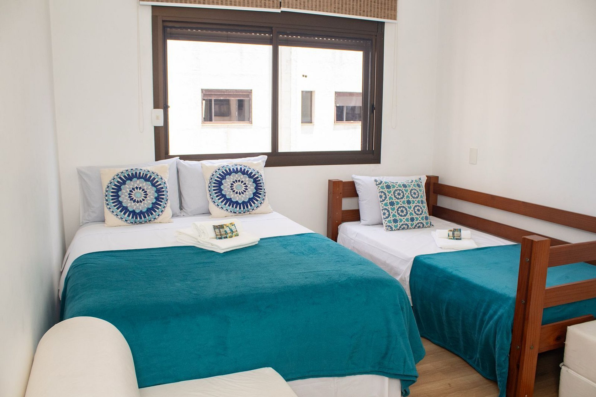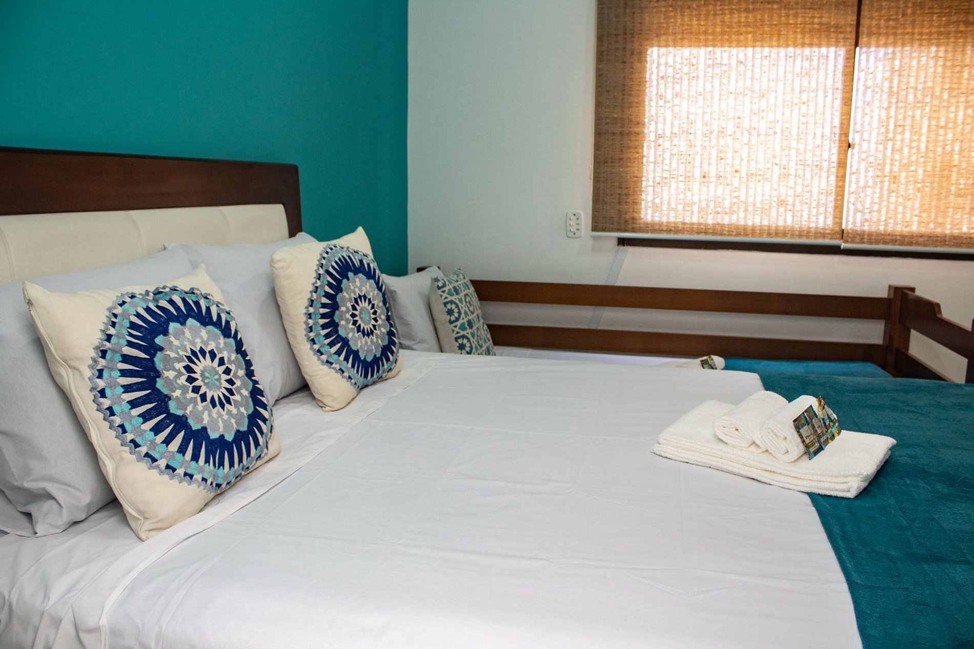 Área do quarto: Primeira suíte: 1 cama de casal e 1 cama solteiro