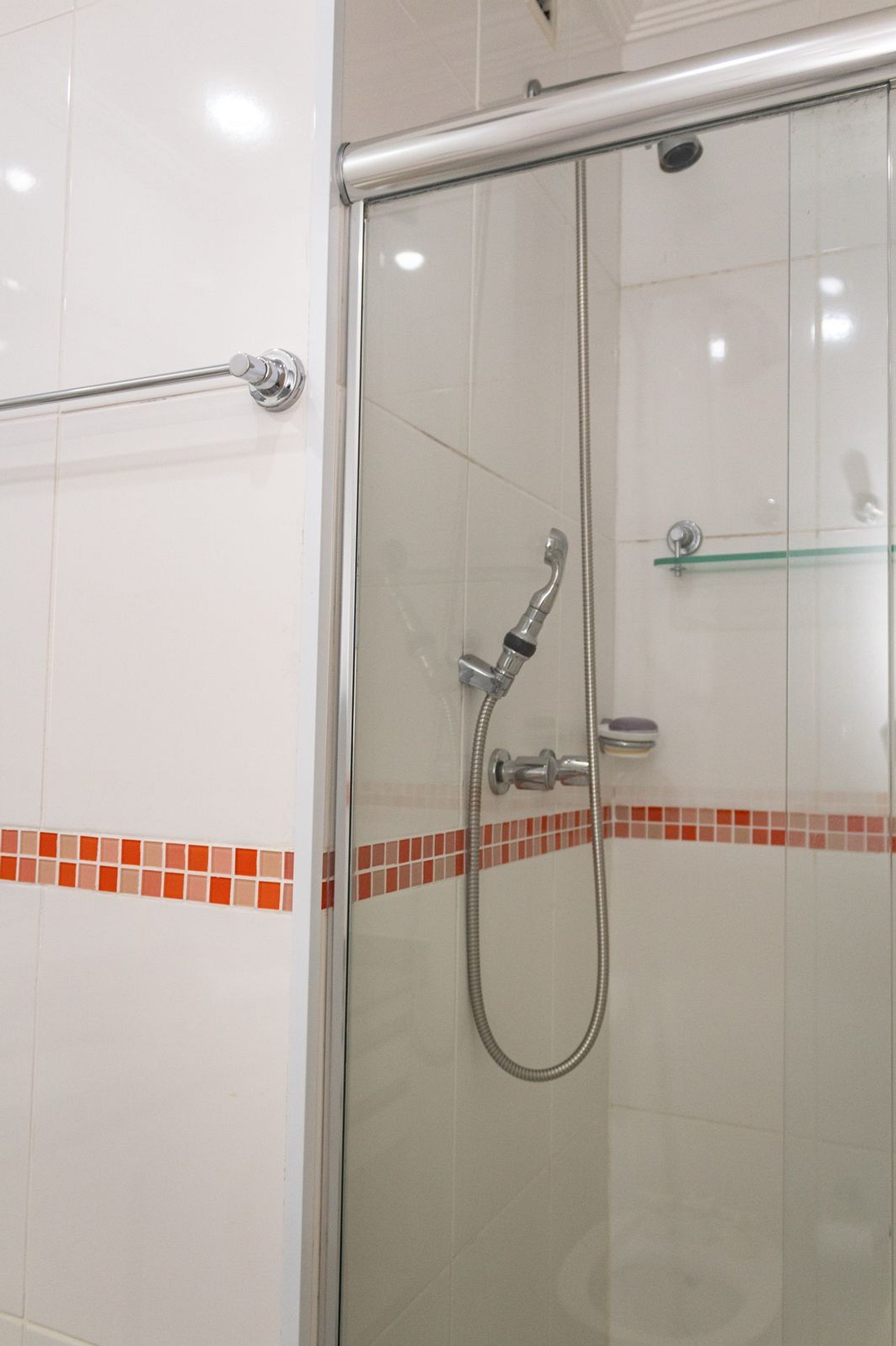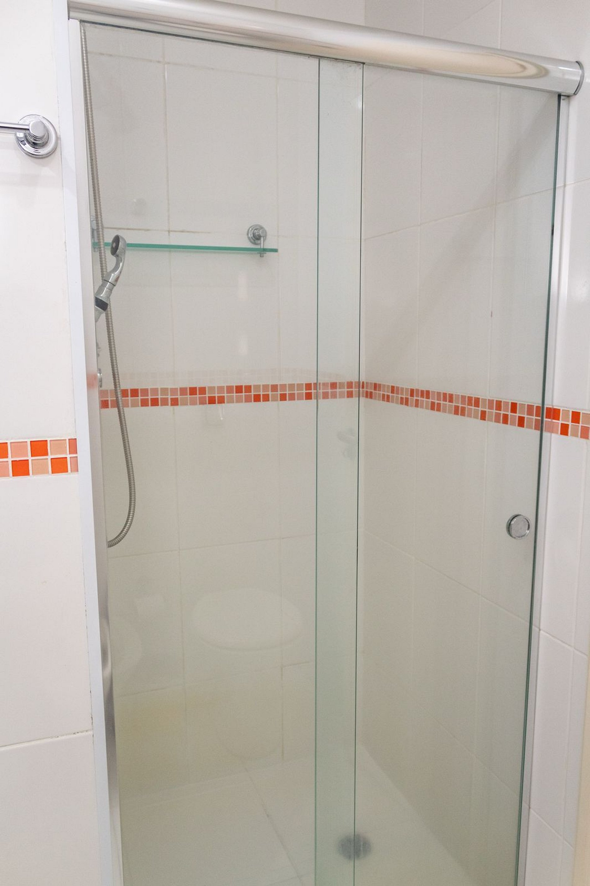 Banheiro: Chuveiro a gás e toalhas de banho.
