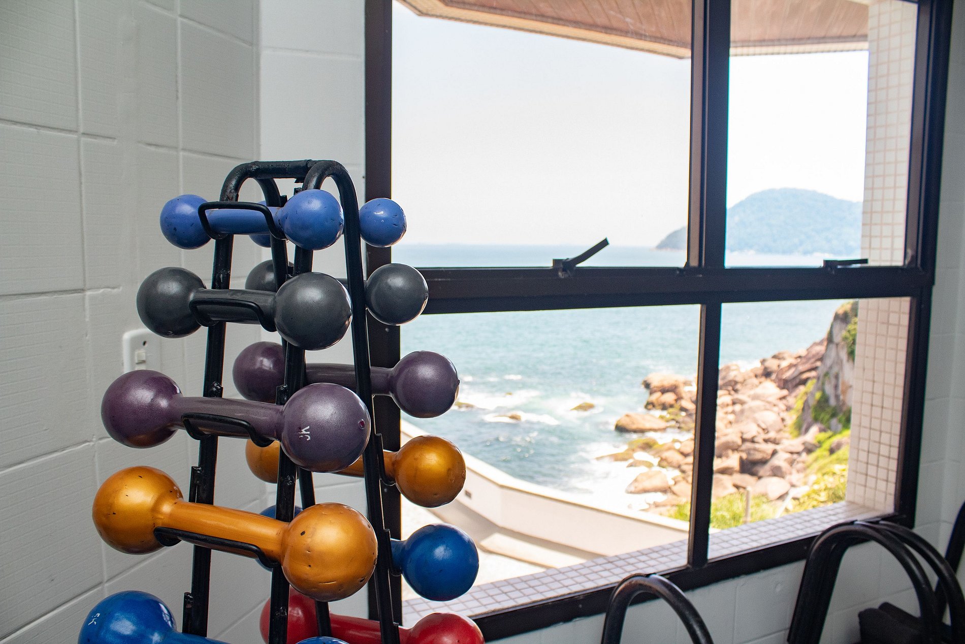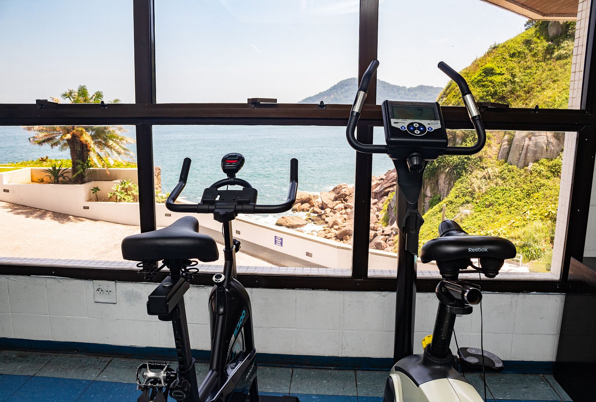 Sauna seca e molhada academia com vista para o mar salão de festas quadra de tênis