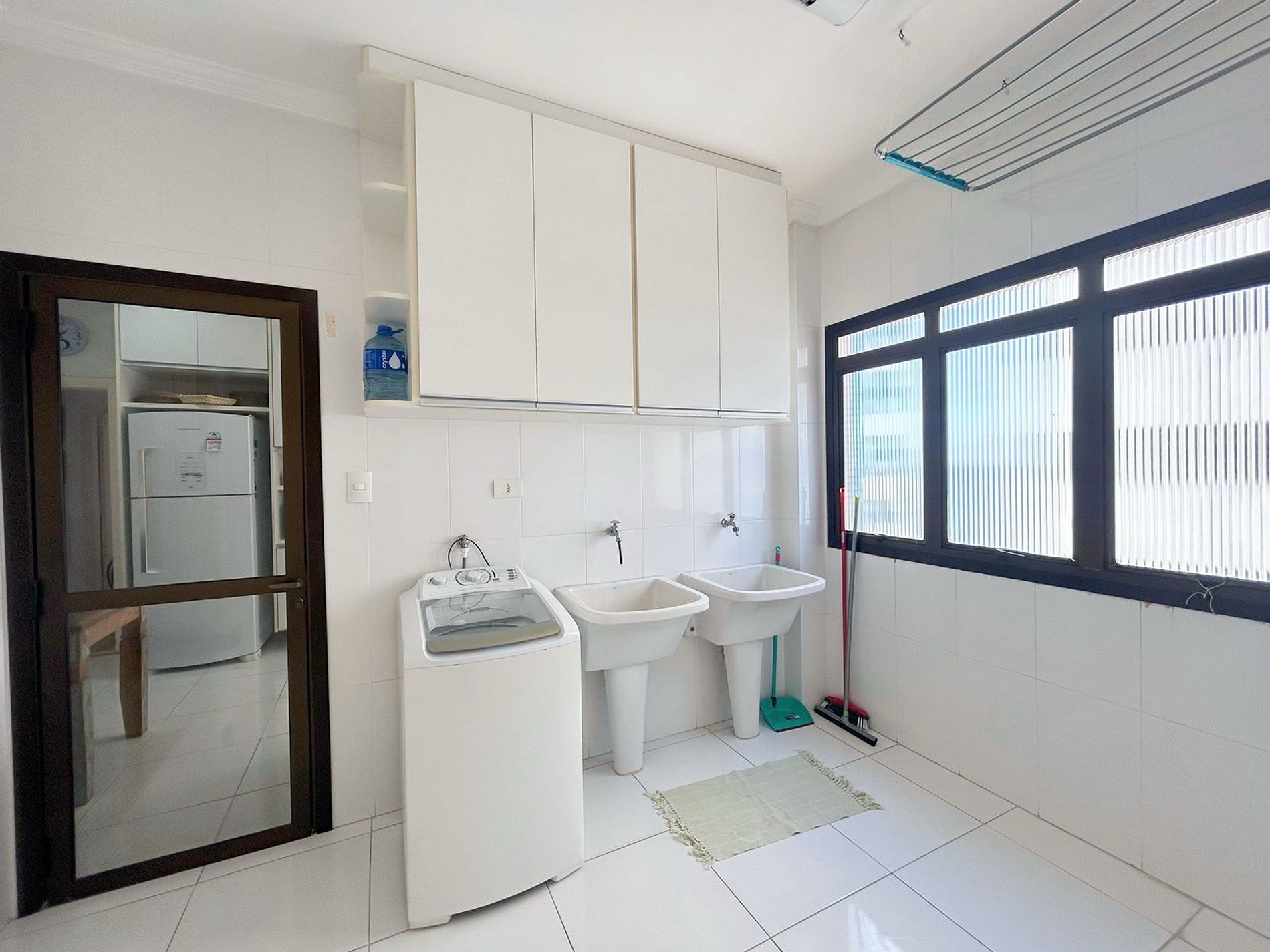 Quarta suíte com banheira: 1 cama Queen Área de serviço: máquina de lavar, tanque e varal.